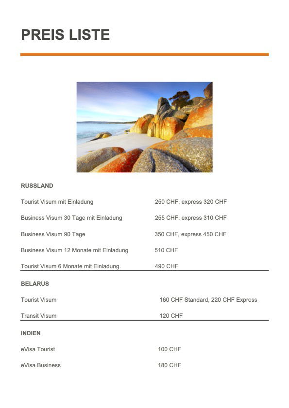 Wir sind schnell, zuverlässig, kompetent und bieten die besten Preise in der Schweiz! Egal ob Sie ein Touristenvisum, Businessvisum, Transitvisum oder nur ein Einladungsschreiben benötigen – wir helfen Ihnen gerne.